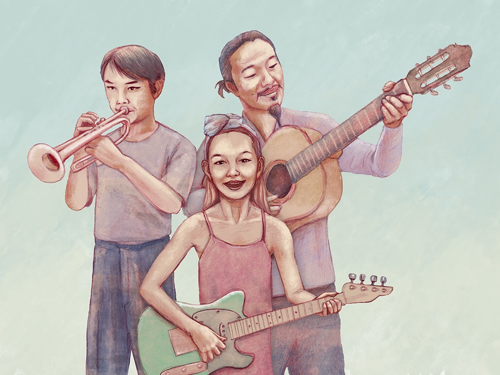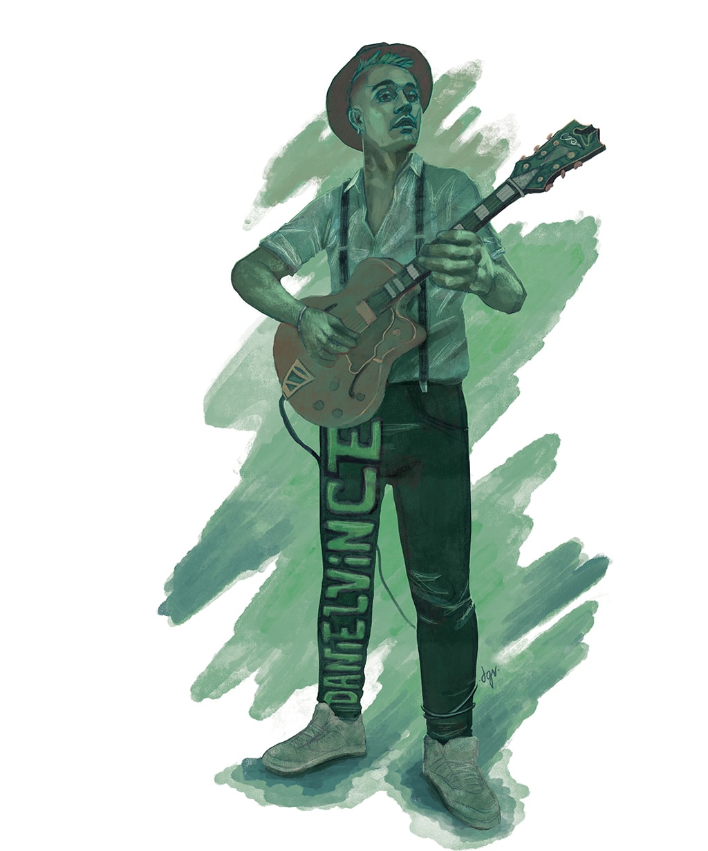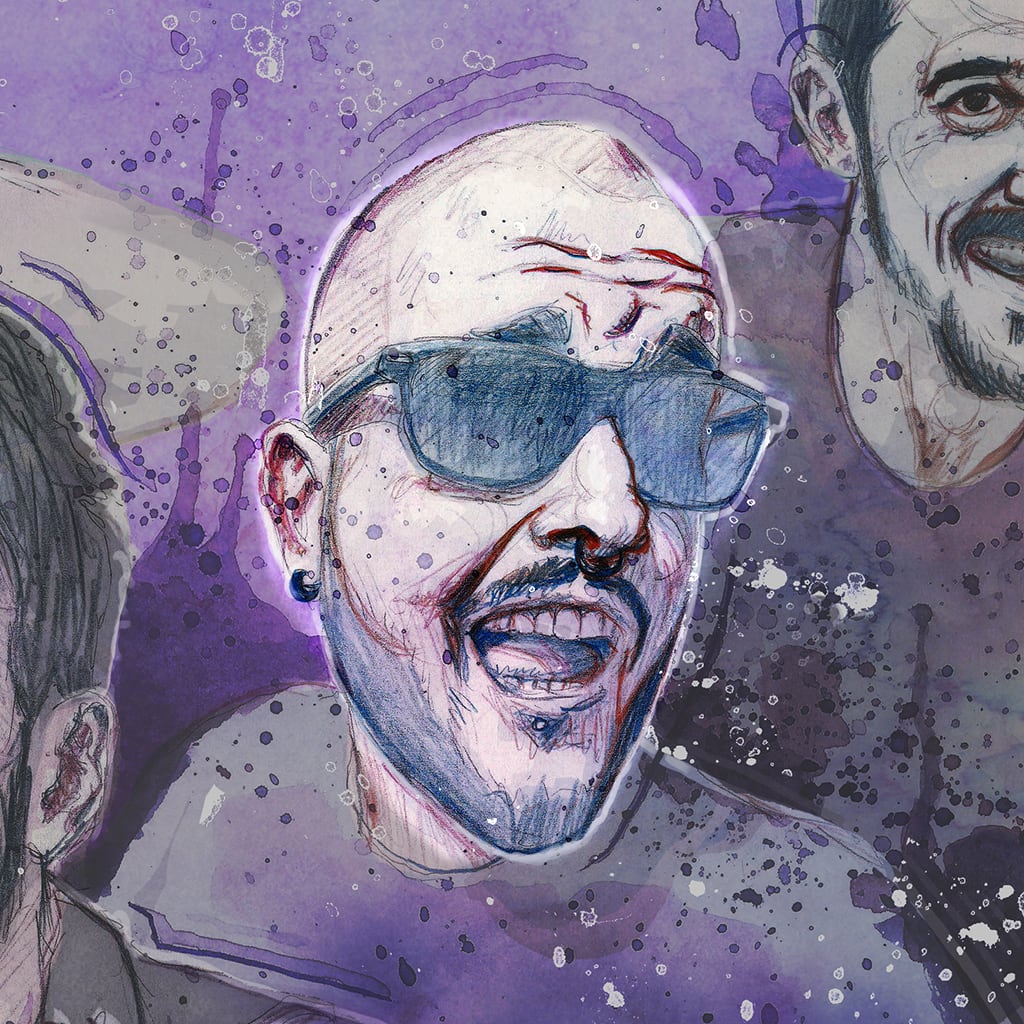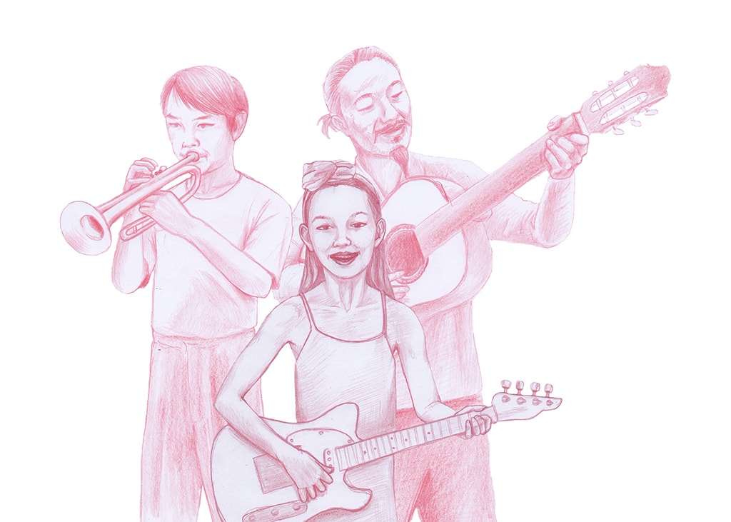 Ilustraciones realizadas con técnica mixta (lápiz de color y retoque digital) sobre algunos de los músicos con los que colabora.