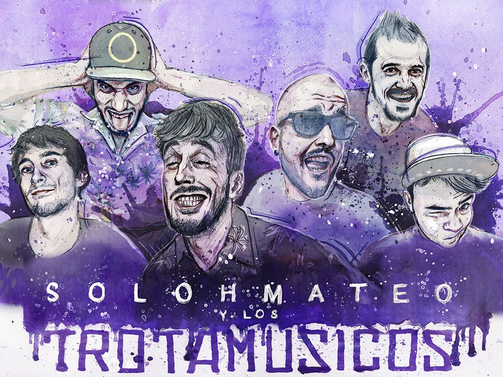 Diseño de carátula e ilustración para eI disco «Soloh Mateo y los Trotamúsicos». La ilustración para la portada está realizada con acuarela, lápiz de grafito y técnica digital.
