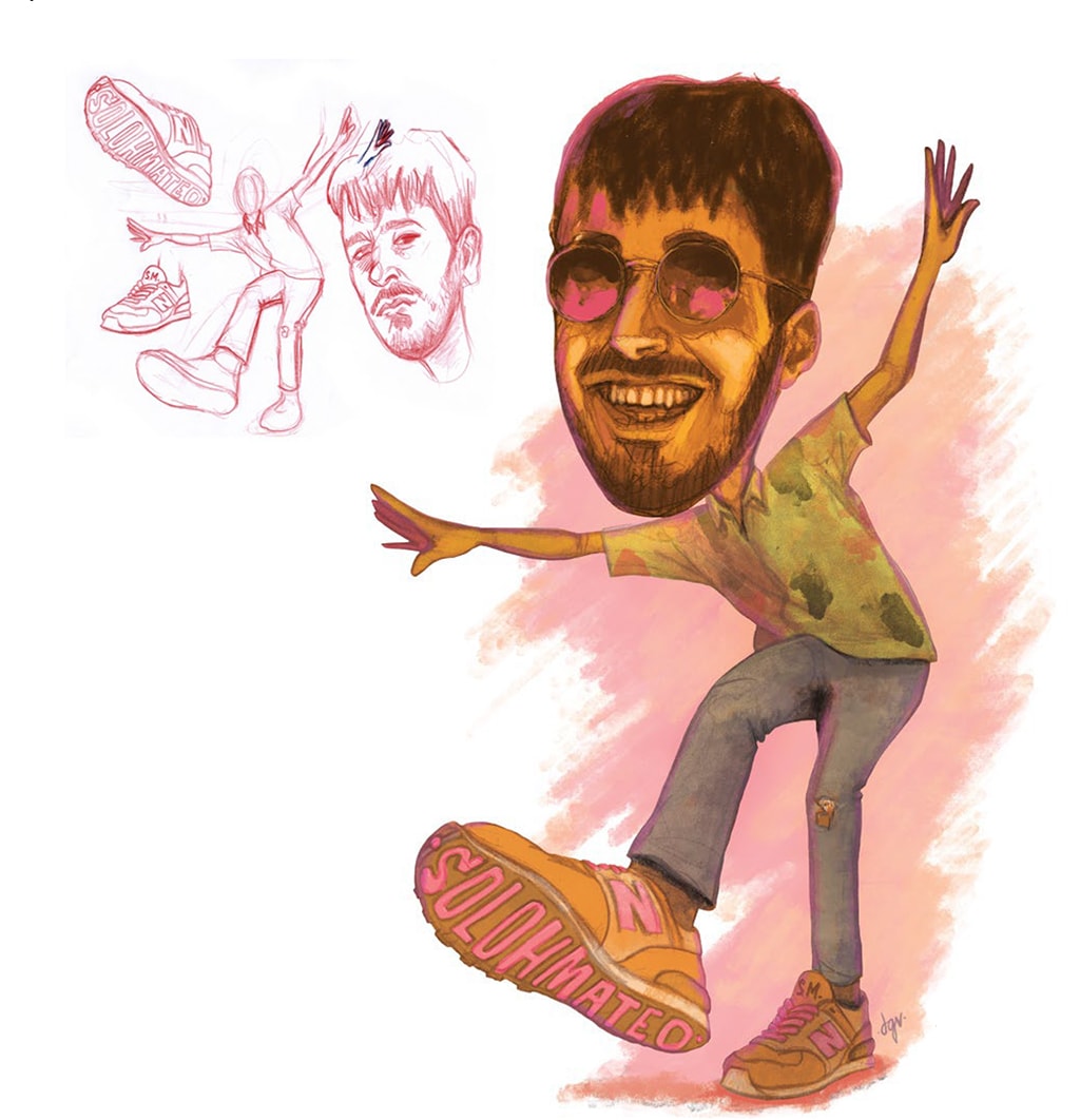 Ilustración realizada con técnica mixta (dibujo a lápiz y color digital) para supuesto de promoción de disco Latin & Love y gira.