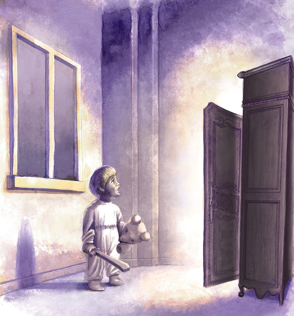 Ilustraciones realizadas con acuarelas, lápices de color y retoque digital para ficticio de cuento infantil.